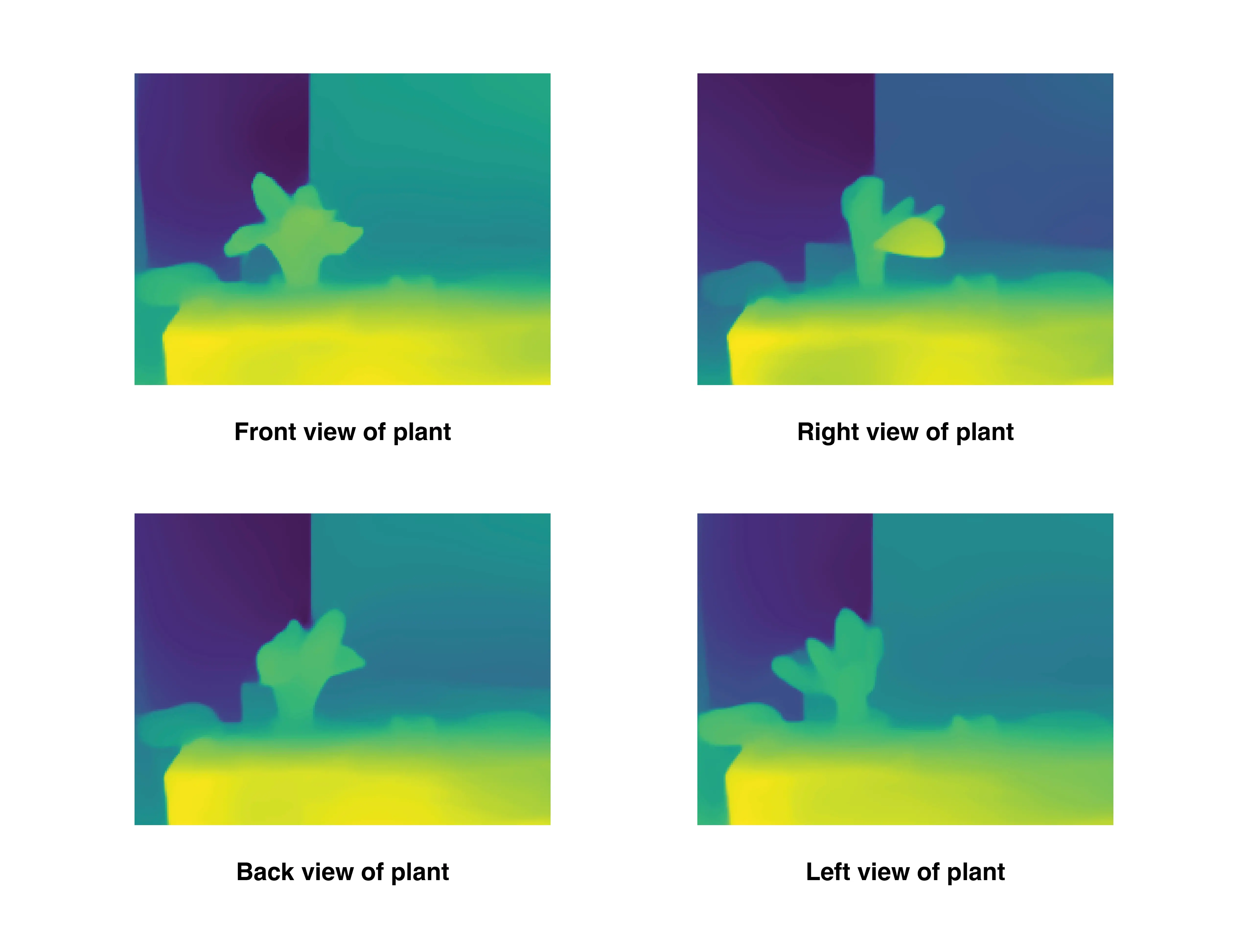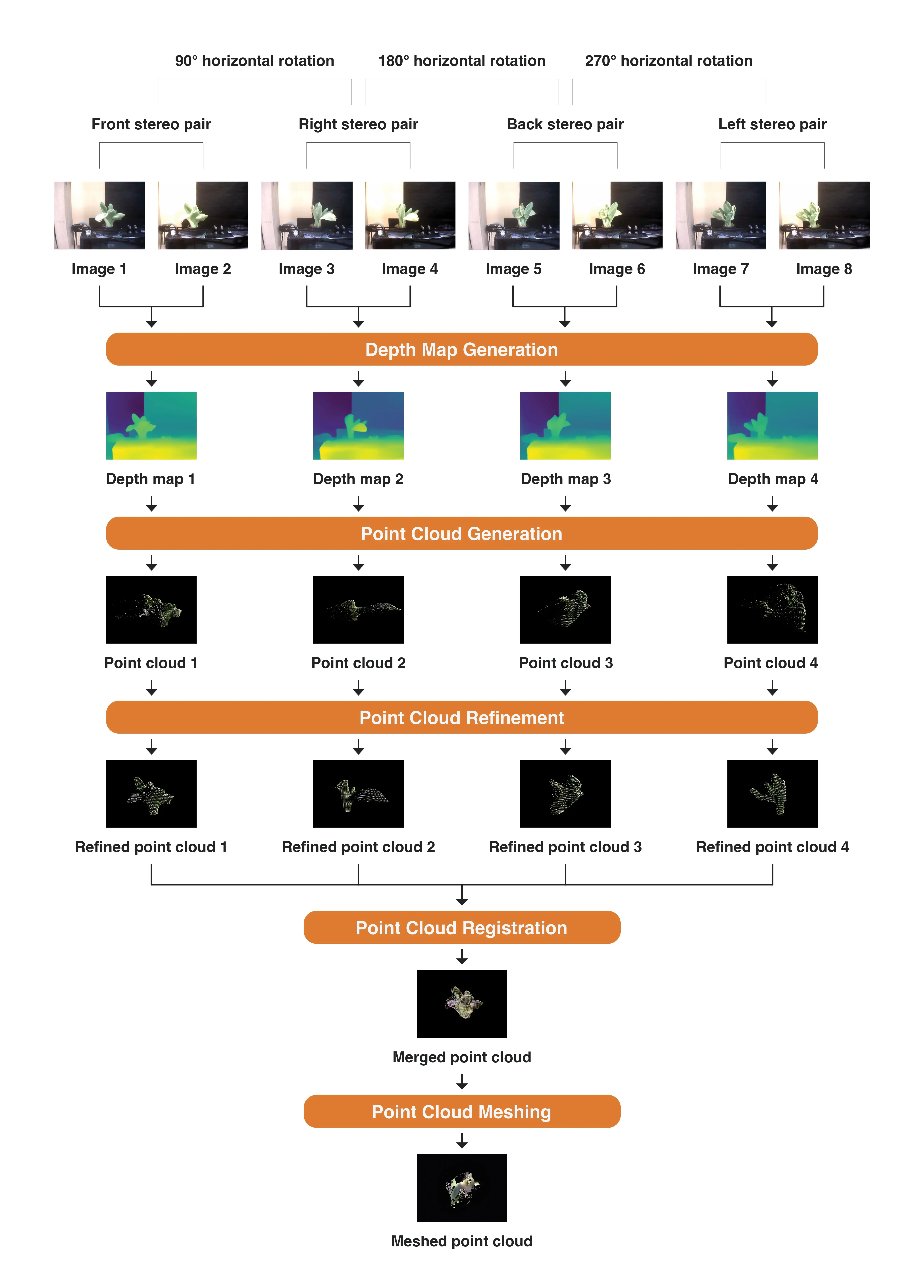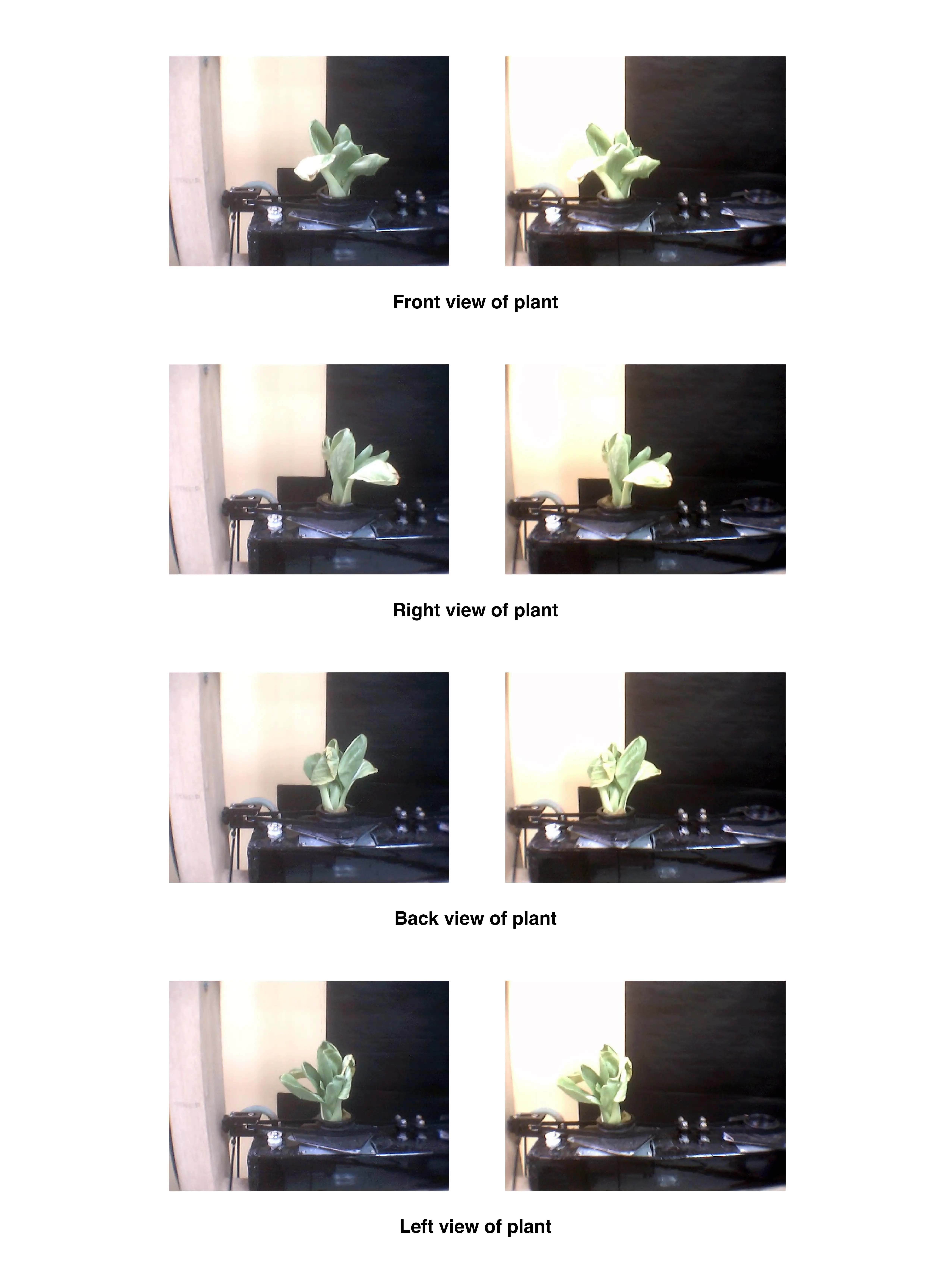 Four stereo pairs, each capturing 90-degree horizontal rotations around the plant.