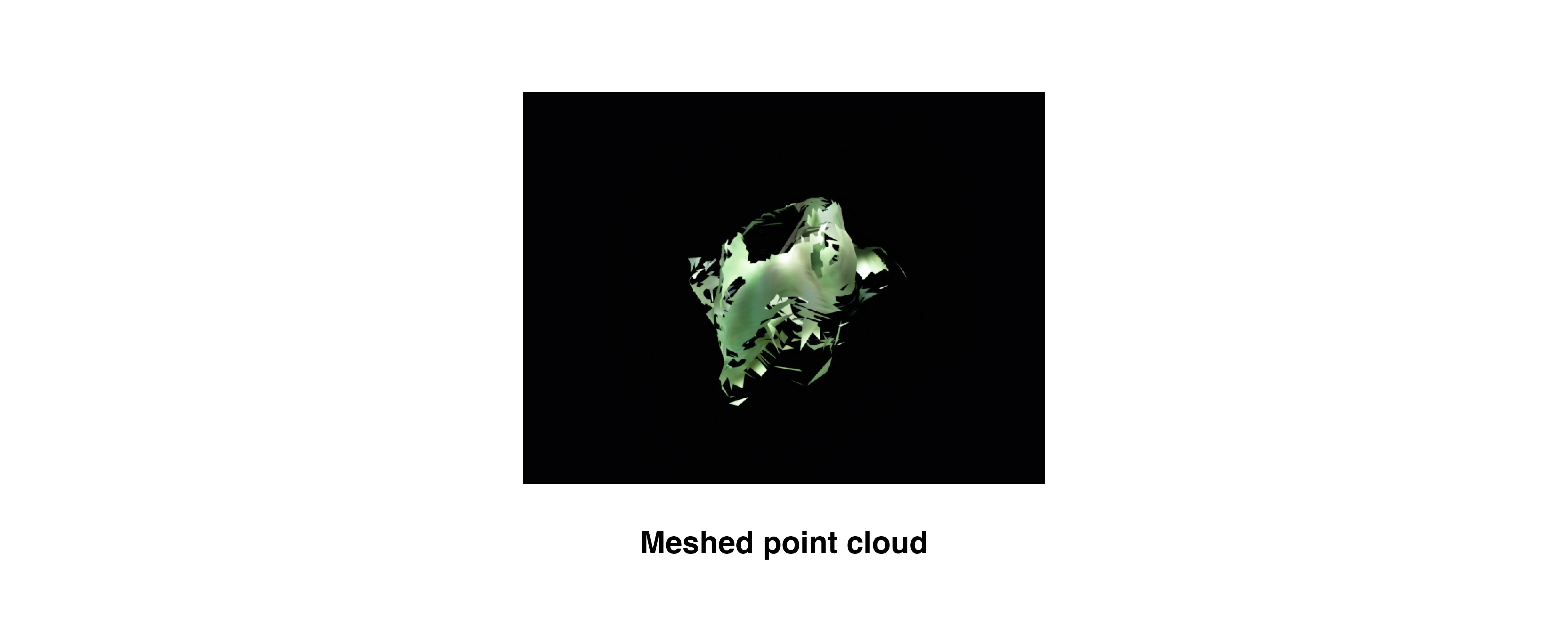 From the downsampled and normalized merged point cloud, a triangular mesh is generated using the Ball Pivoting Algorithm (BPA). The mean nearest-neighbor distance $\bar{d}$ is estimated, and a sequence of radii $\{r, 10r\}$ is defined with: