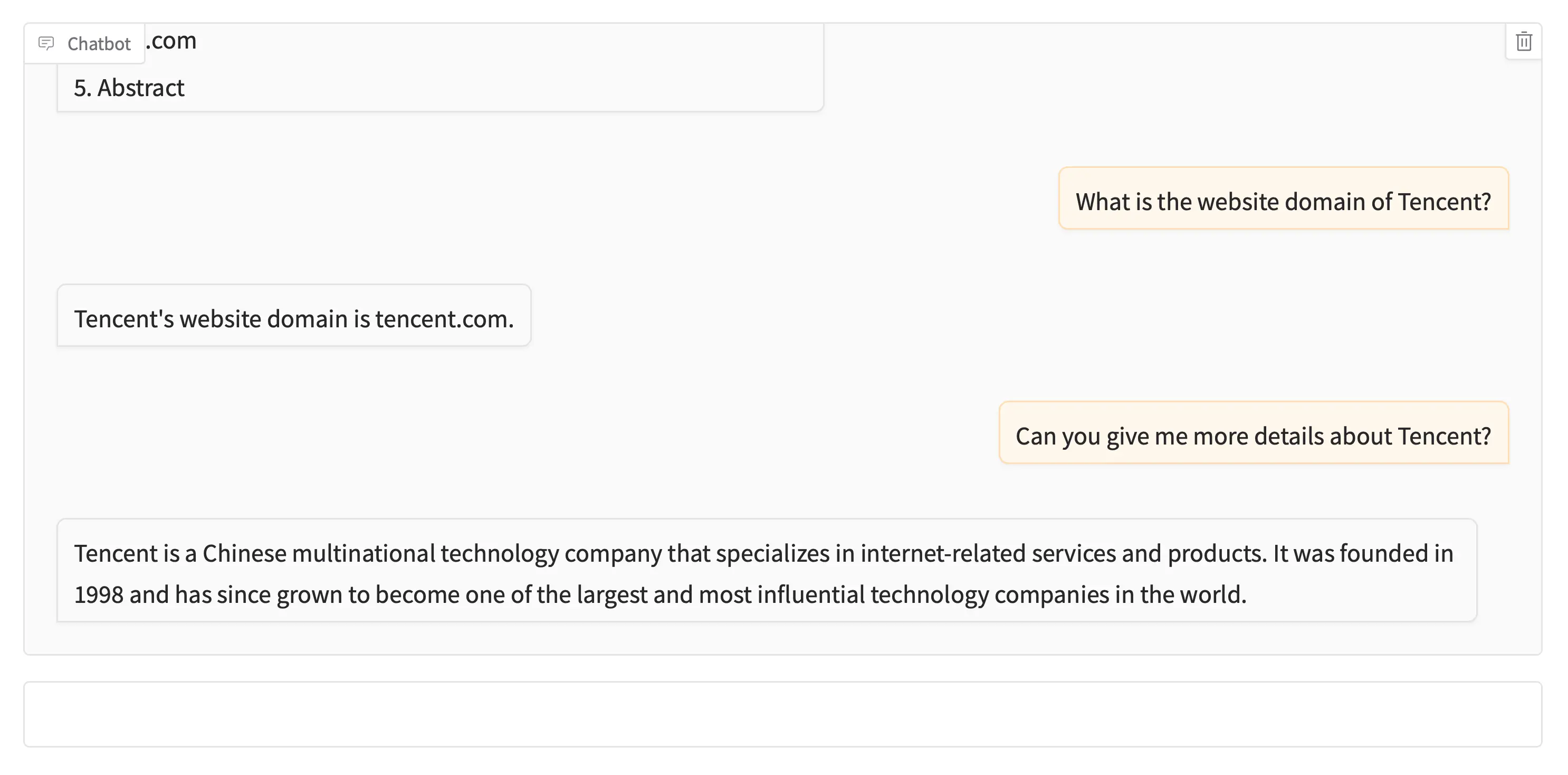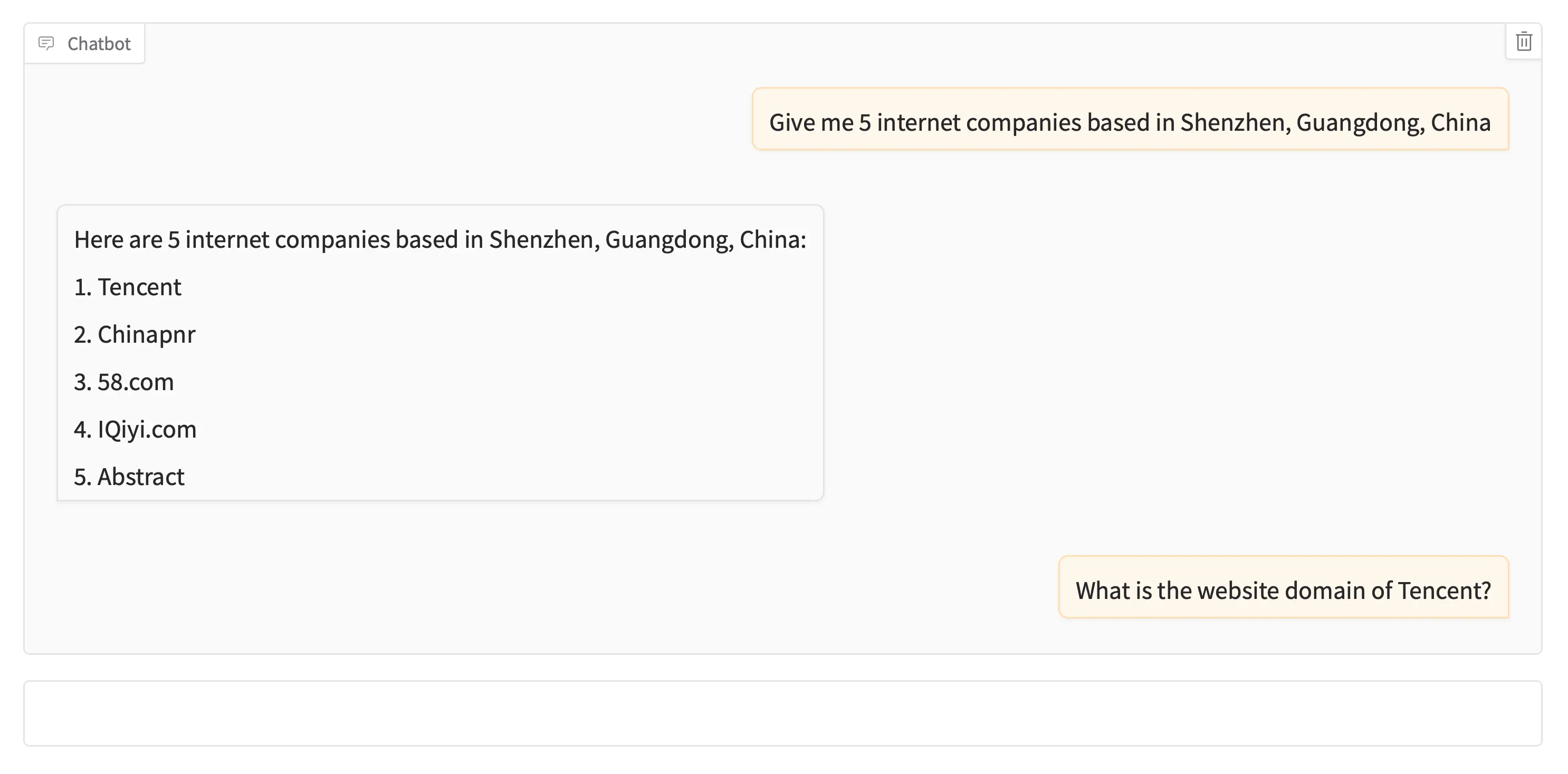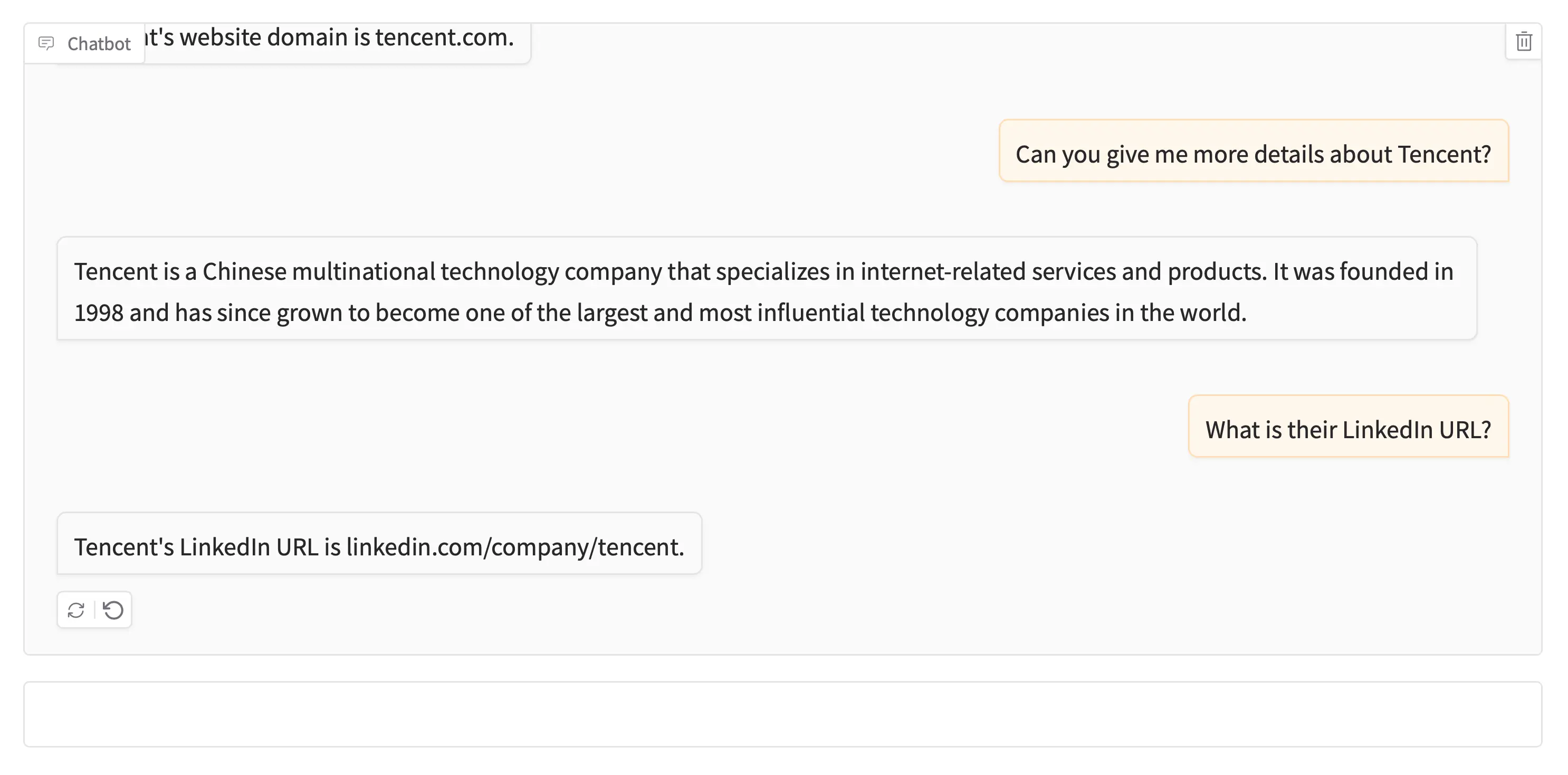 A simple Large Language Model (LLM)-powered chatbot that helps users find information about companies. It uses the People Data Labs 2019 Global Company Dataset from Kaggle, the SentenceTransformers All-MiniLM-L6-v2 embedding model, and the Meta Llama 3.2 1B Instruct LLM from Hugging Face. While the chatbot is simple and retrieves only a small fraction of the dataset, its goal is to demonstrate LangChain, ChromaDB, and Retrieval-Augmented Generation (RAG) for LLM orchestration, vector storage, and retrieval.